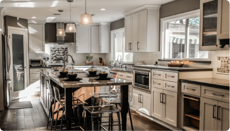 Give the heart of your home - new life! Kitchen remodels can recoup 70 to 80% of their original cost! Design your ideal kitchen with our complete renovation services. Reimagine your layout, customize your cabinetry, and finalize with exquisite countertops - we create spaces that are both functional and stylish. Every detail is handled by our experienced professionals - just worry about the menu for your next event!